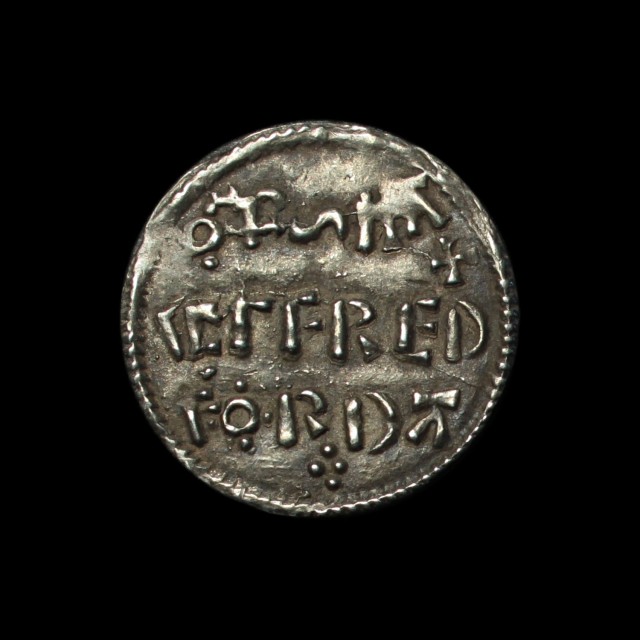Struck c.880-910, \EΓFRED between OR∿NΛ+ FORDΛ, rev. BERH⊥VΓⱭ Mo, 1.39g, (S.971, N.472). Good metal, nicely toned and very fine or better.