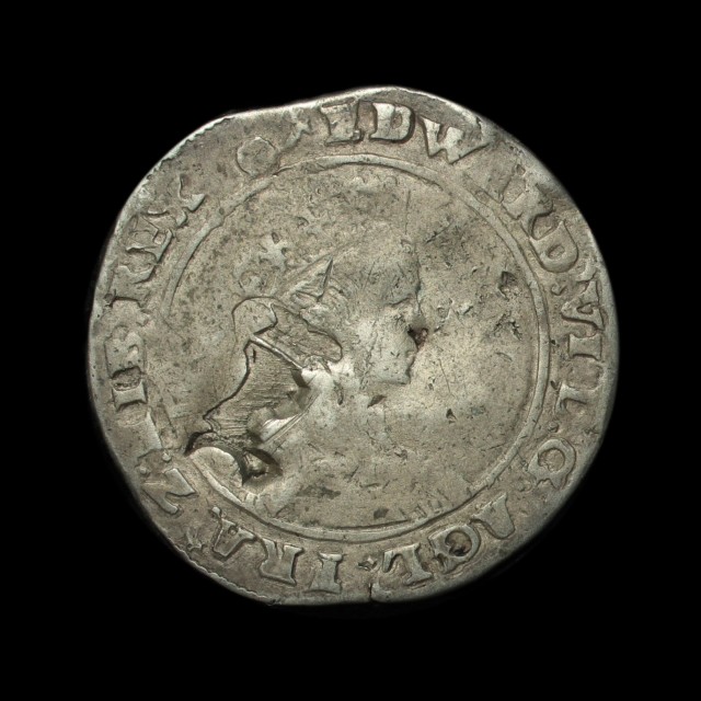 1560, seated greyhound countermark to left of bust on an Edward VI third period, London Shilling, m.m. rose, MDLI, rev. garnished shield dividing E R, 4.90g, (S.2547, N.1990). Sharply struck countermark, host coin good fine for type, a good example of this issue, extremely rare