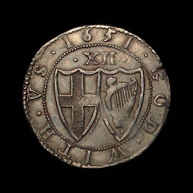 1651, English shield within laurel and palm branches, mm.sun, 5.73g, (S.3217, N.2724, ESC.983)