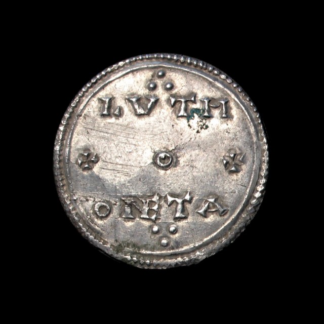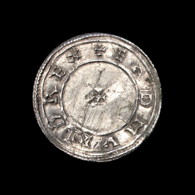 Moneyer Lut, reverse with annulet between two crosses with a trefoil of pellets above and below. An unlisted moneyer and reverse type, 1.31g (s.1105, N.-). Lightly bowed but very fine, extremely rare, possibly unique.