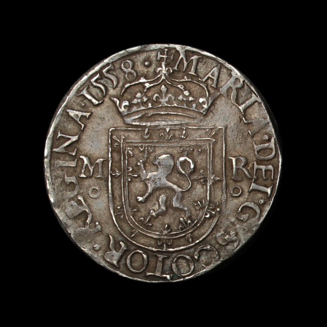 Type IIIb, low arched crown over Scottish shield dividing MR, annulets below, 1558, rev. cross potent with cross in each angle, 6.12g, (S.5407). Toned good very fine.