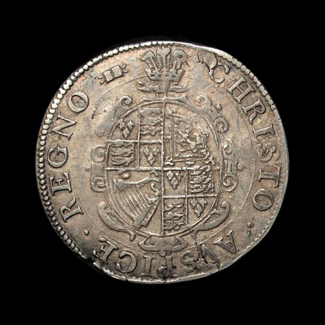 Large bust left, plume before, small mark of value behind, no inner circle, rev. garnished shield, plume above, mm. book, 5.87g, (S.2881, N.2328). A good portrait and full flan, attractive and very fine