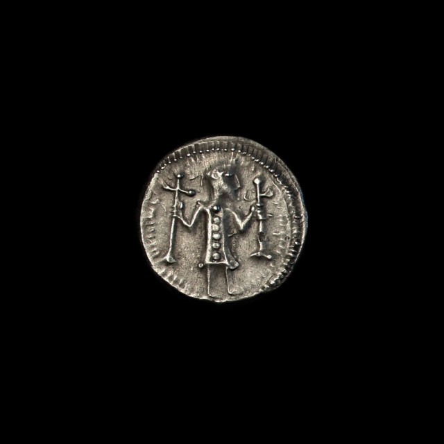 Series W, Metcalf D, standing figure with buttoned tunic holding long cross pommee in each hand, rev. cross crosslet on cross pommee, pellet in each angle, 1.06g, (S.0787, N.148, Metcalf D). A super example in a fine style, good very fine/almost extremely fine and very rare