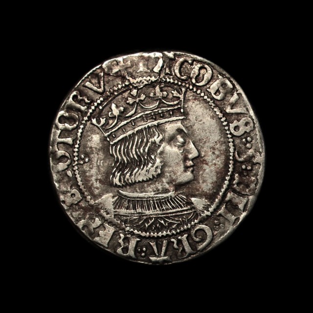 Type III, crowned bust right with open mantle, trefoil of pellets behind head, rev. shield on long cross forchee, 2.71g, (S.5378). A full round coin, good portrait and very fine to good very fine