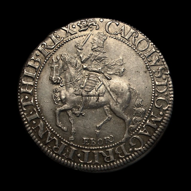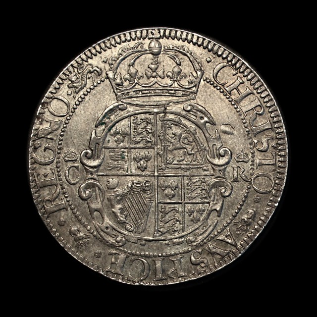 Type 6, king on horseback left, EBOR below, rev. oval crowned garnished shield dividing crowned C R, mm. lion, 14.85g, (S.2868, N.2314). Fairly well centred and sharp, much as struck, in an NGC holder graded MS 62