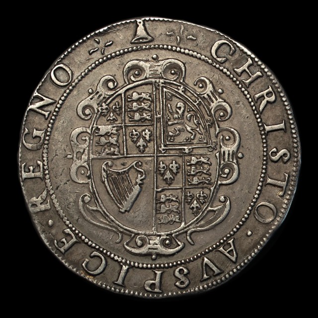 Group III, type 3a, king on horseback left holding sword, rev. oval garnished shield, mm. bell over portcullis/bell, 30.03g, (S.2758, N.2195). Evenly struck throughout (this issue often weakly struck on the underbelly of the horse), attractive grey cabinet tone, good very fine and a handsome example of the type