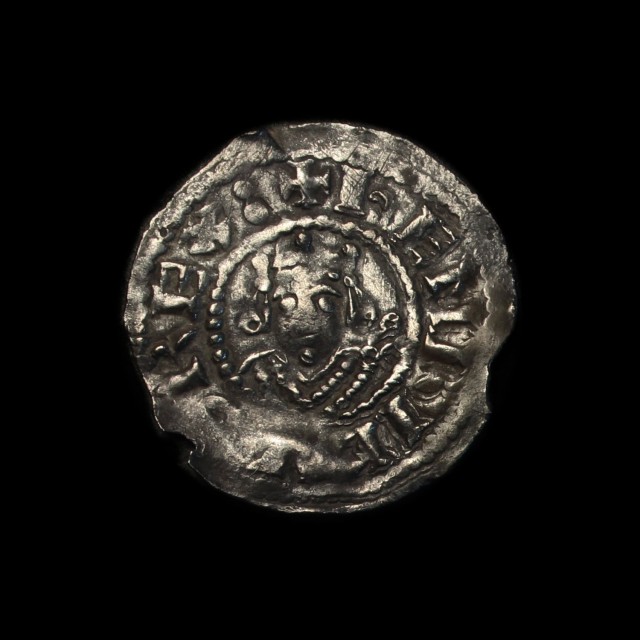 Facing bust, rev. cross fleury, + LEPINE:ON:SVT[D?], 1.29g, (S.1271, N.866). Flat on nose as usual with this type, toned and overall with good detail, very fine