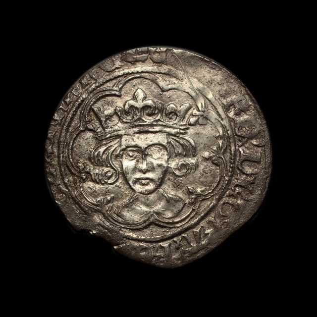 Crowned facing bust, reads, EDWARD, rev. long cross pattee, mm.BH1 over sun and rose 1/sun and rose 1, 3.10g, (S.2155, N.1679). Obver a touch off-centre but with a strong portrait, good very fine and rare
