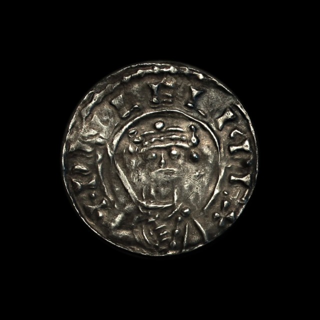 Dover mint, moneyer Leofwine, crowned bust facing holding sword, +PILLELMREX, rev. cross in quatrefoil, +LIFPINE ONDOFR, 1.28g, (S.1259, N.852). Quite well struck and nicely toned, slighly weak in parts but good very fine