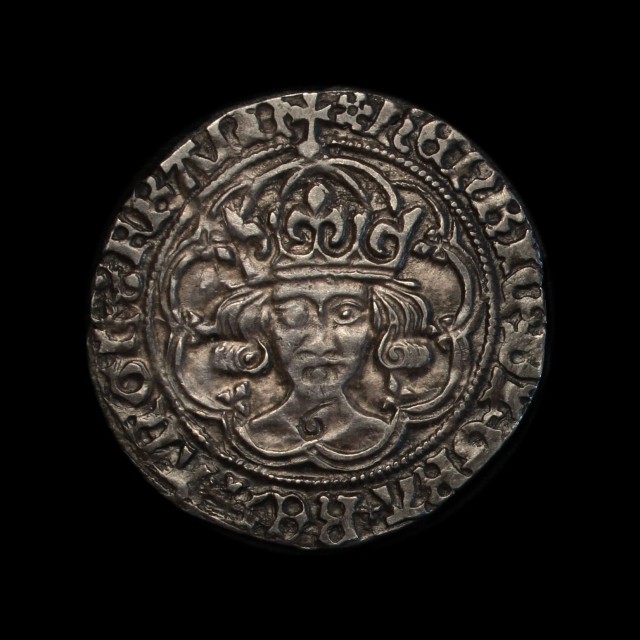 Crowned facing bust, crown with two plain arches, rev. long cross forchee, mm.cinquefoil, 3.02g, (S.2195, N.1704). Small jewellers mark on breast, otherwise most attractively toned and nearly extremely fine