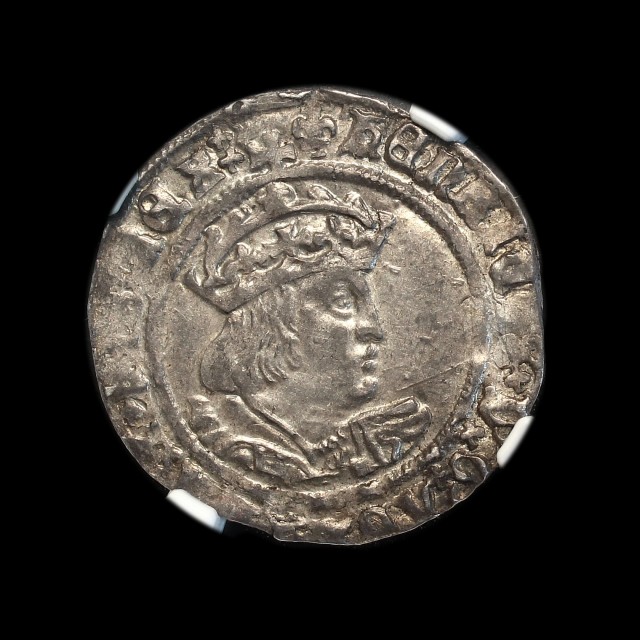 Crowned bust right, legend reads HENRIC 8 and FRA' Z HIB' REX, rev. long cross fourchee over shield, mm.lis, 2.74g, (SCBC 2338, N.1798). A few weak areas as normal with this late issue, but with excellent surfaces and original brilliance, rare so nice, certified and graded by NGC as AU 58