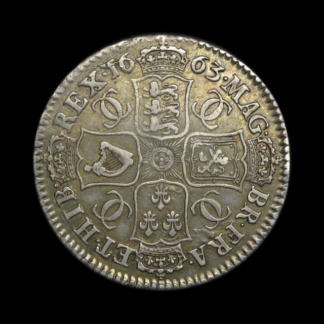 First bust 1663, edge XV, A over T in GRATIA (S.3361, ESC.457)