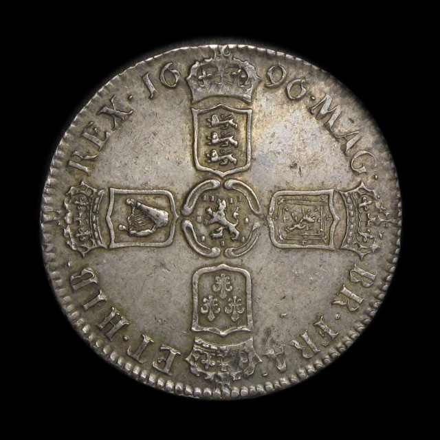 First bust, 1696, small shields, edge OCTAVO, (S.3475, ESC.534)
