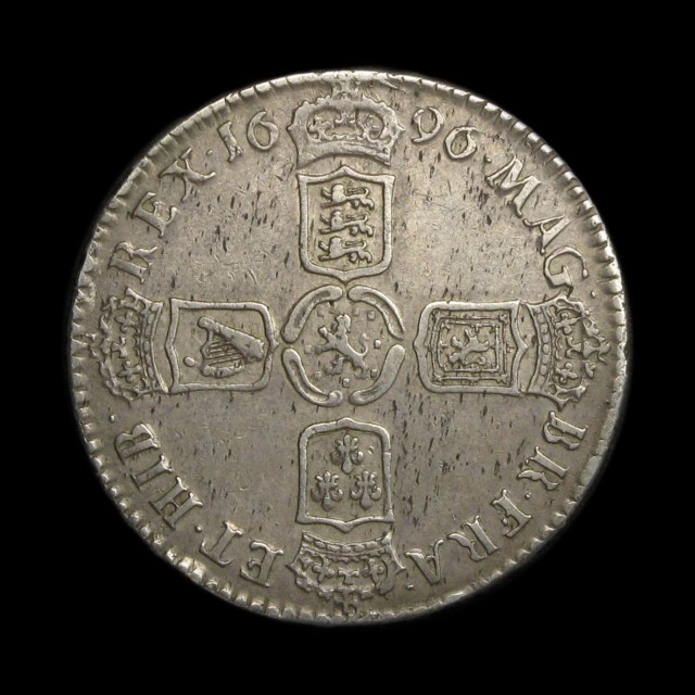 First bust, 1696, York, small shields, edge OCTAVO, (S.3480, ESC.539)