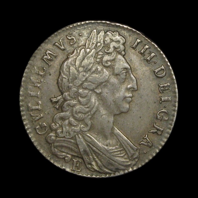 First bust, 1697, Exeter, large shields, edge NONO, (S.3490, ESC.547)