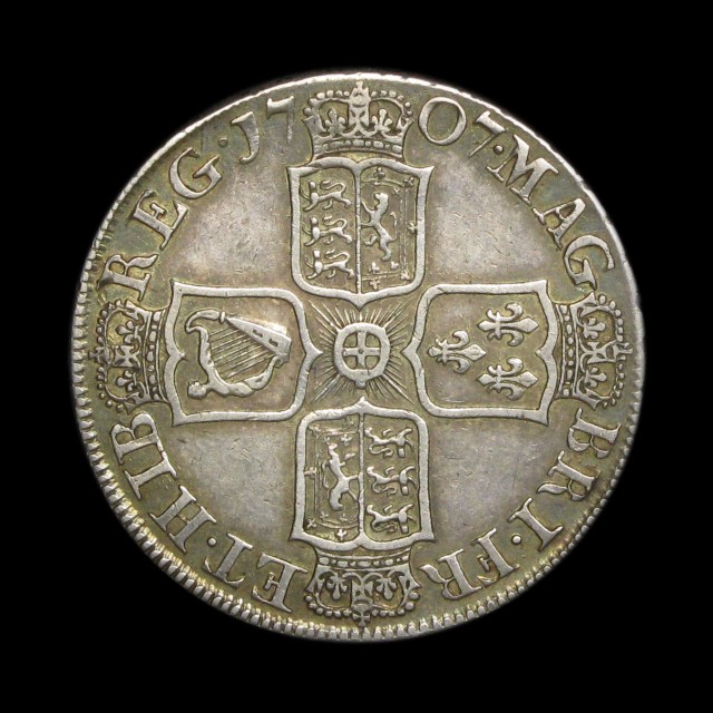 Draped bust, angles plain, edge SEPTIMO, 1707 (S.3604, ESC.574)
