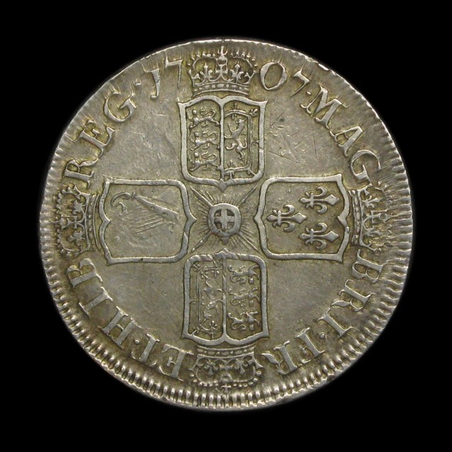 Draped bust, Edinburgh, 1707E, angles plain, edge SEXTO, (S.3605, ESC.575)