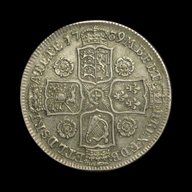 Young laureate and draped bust, roses in angles, 1739, edge DVODECIMO (S.3693, ESC.600)