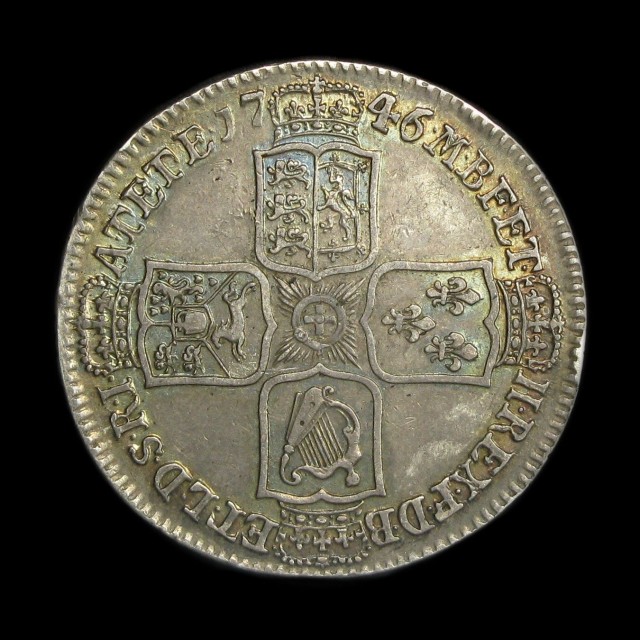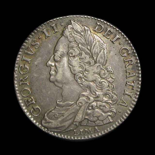 Old bust, 1746, LIMA below bust, GEORGIUS, plain angles rev. edge D.NONO (S.3695, ESC.606))