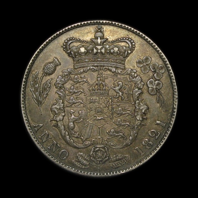 Laureate Head, reverse with crowned heavily garnished shield, 1821 (S.3807, ESC. 631)