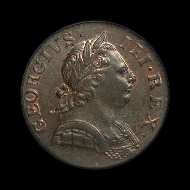 First issue, tower mint, 1771, laureate and cuirassed bust, Britannia to reverse (S.3774, Peck 898)