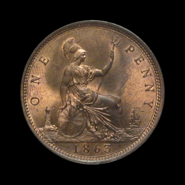 Laureate bust 'bun head', 1863, obv 6, rev G (S.3954)