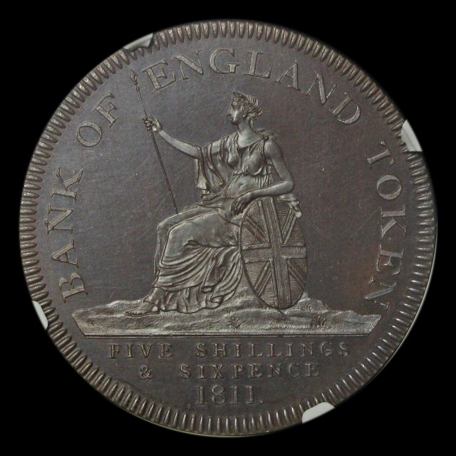 Bank of England, pattern 5 shillings and sixpence, 1811, type C/4, struck in copper (ESC.195)
