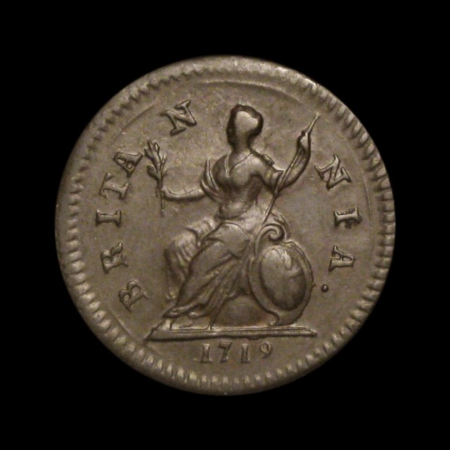 Second issue, 1719, laureate and cuirassed bust, small letters (S.3662)