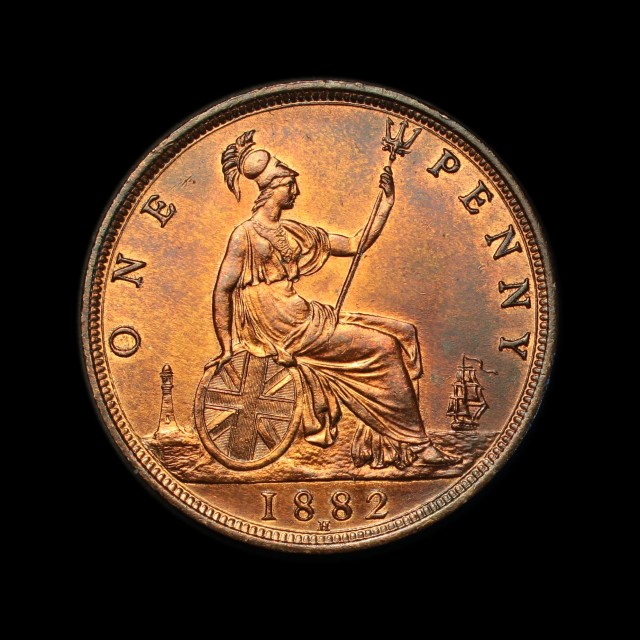 1882, Heaton mint, 'bun' head left, rev. Britannia seated, date below, (S.3955)