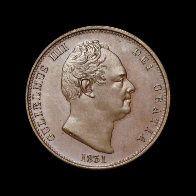 Proof struck in bronzed copper, 1831, bare head right, up/down die axis (S.3847, Peck 1463)