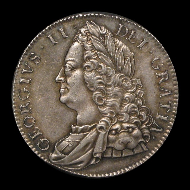 Old laureate and draped bust, 1751, V.QVARTO to edge, angles plain to reverse, (S.3690, ESC.128)