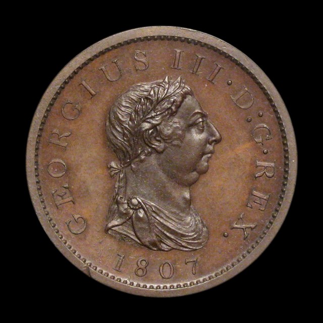 Restrike Proof struck in bronzed-copper, 1807, laureate and draped bust right (S.3780, Peck 1354 R98)