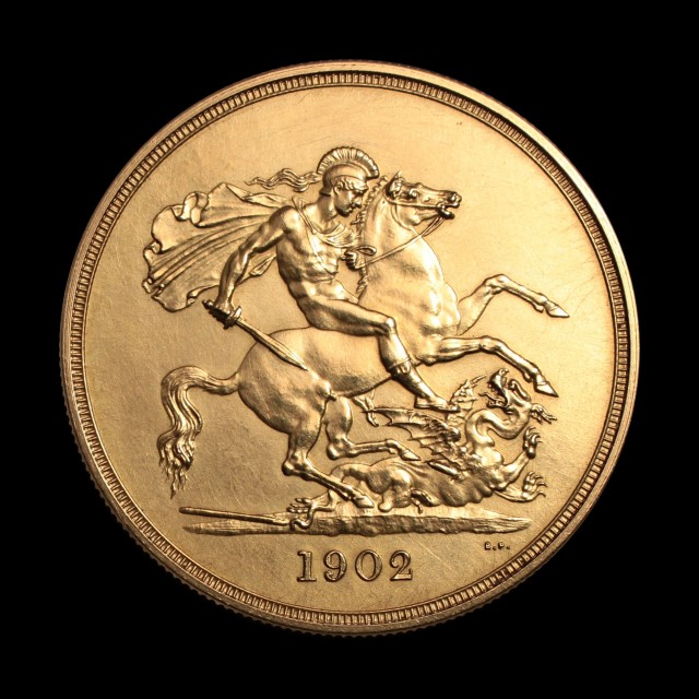 Matt proof, 1902, bare head r., rev. St. George slaying dragon, (S.3966)