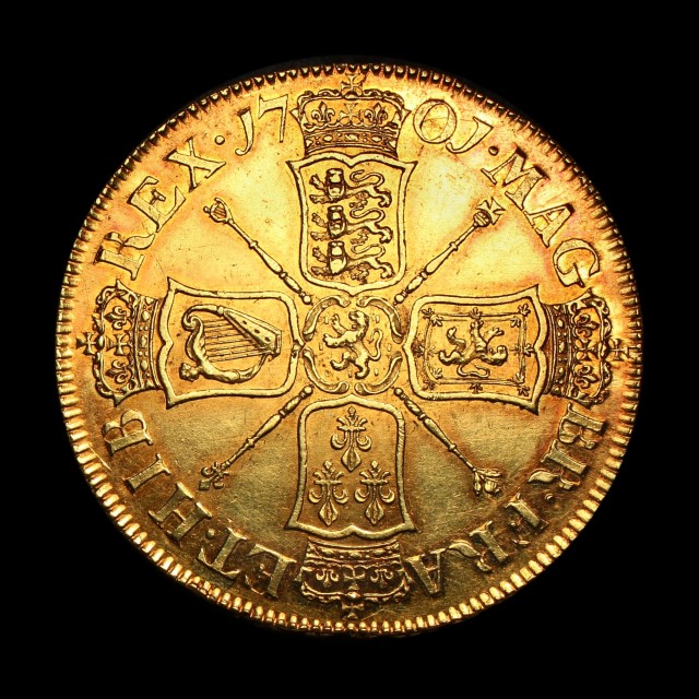 Second bust, 'Fine work', 1701, edge DECIMON TERTIO, (S.3456)