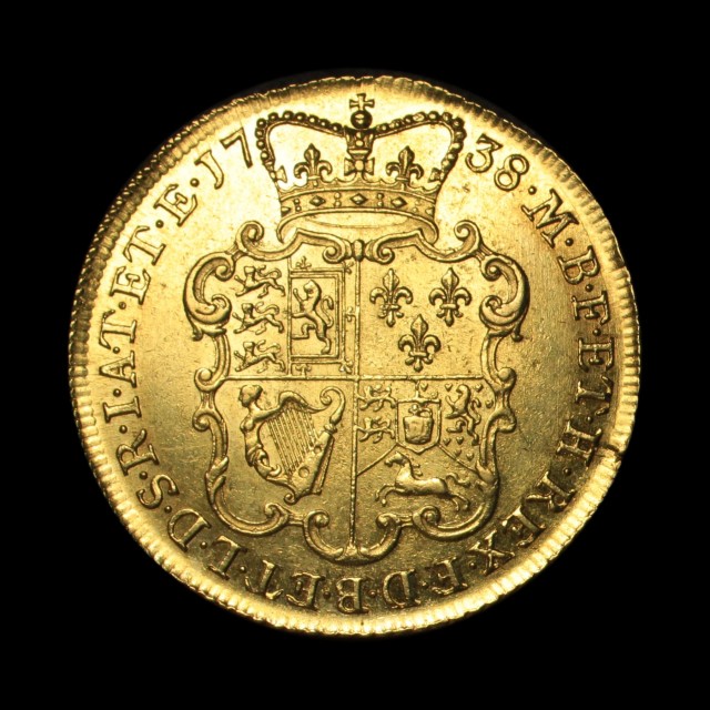 1738, young laureate head left, rev. crowned shield, (S.3667B)