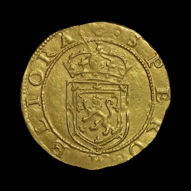 1594, armoured figure of king r., brandishing sword, rev. crowned shield of arms, 4.96g, (S.5458). Extremely fine with an exceptional portrait, rare.
