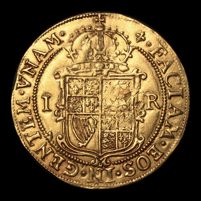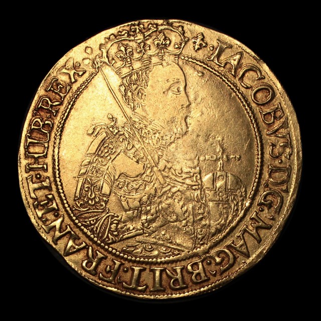 Second bust, half length portrait r. holding orb and sceptre, rev. crowned quarter shield between I R, mm. lis, 9.94g, (S.2618, N.2083). Small flan flaw on shield and slightly weak on king's chin, otherwise very fine.