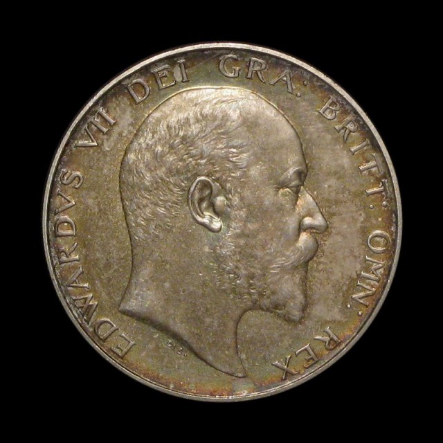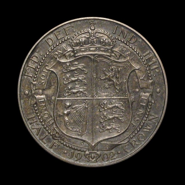 Bare head, 1902, reverse crowned shield in garter (S.3980)