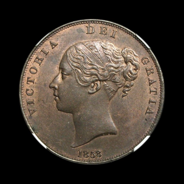 A few minor tone spots, good extremely fine. NGC slabbed MS 64 RB.