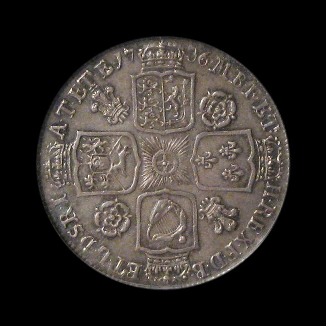Young bust, 1736, roses and plumes in angles to reverse (S.3699, ESC.1199)