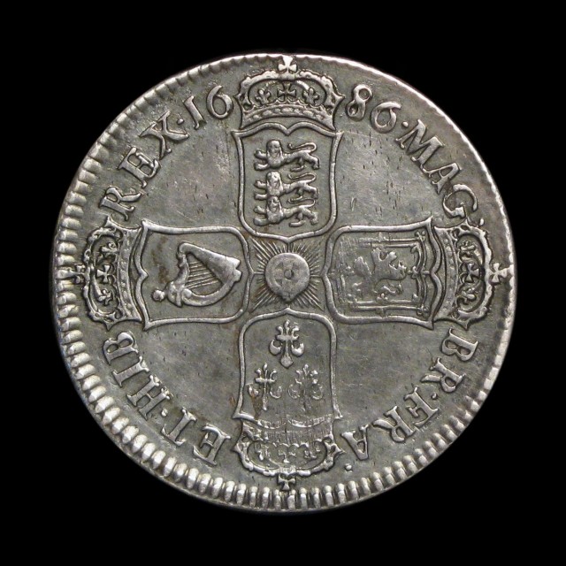 First laureate and draped bust, 1686, edge SECVNDO (S.3408, ESC.494)