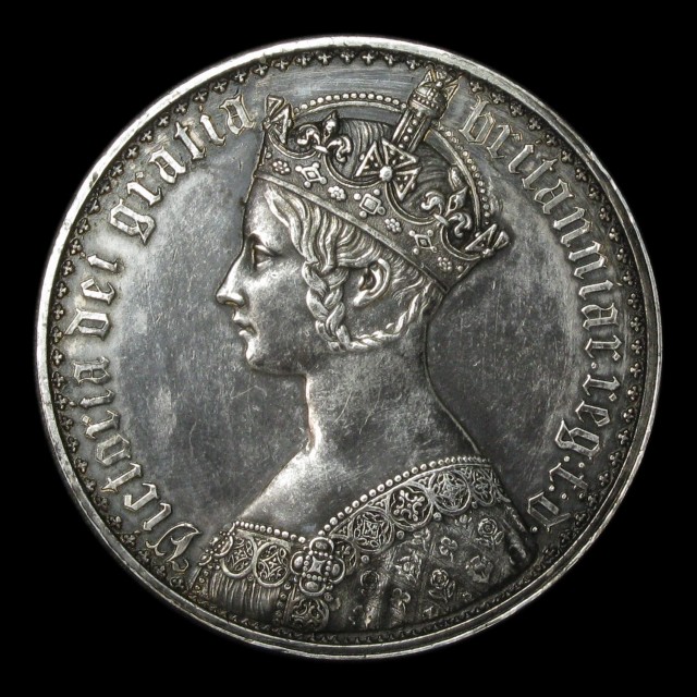 Gothic type, bust left, 1847, edge plain, (S.3883, ESC.291)