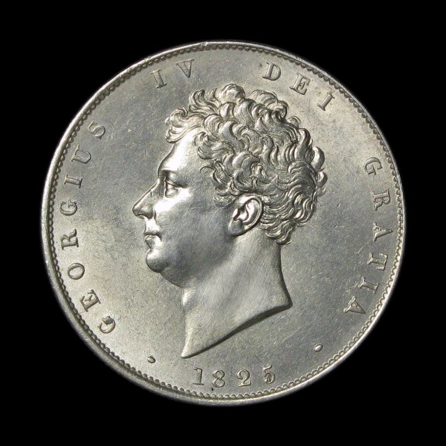 Bare head, date below, 1825, R.Crowned shield with crest (S.3809, ESC.642)
