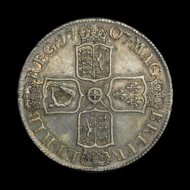 Draped bust, angles plain, edge SEPTIMO, 1707 (S.3604, ESC.574)