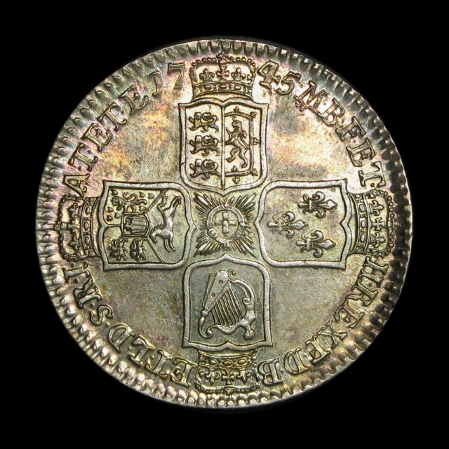 Old bust, 1745, D.NONO to edge, LIMA below bust, GEORGIUS, plain angles rev. (S.3695, ESC.605))