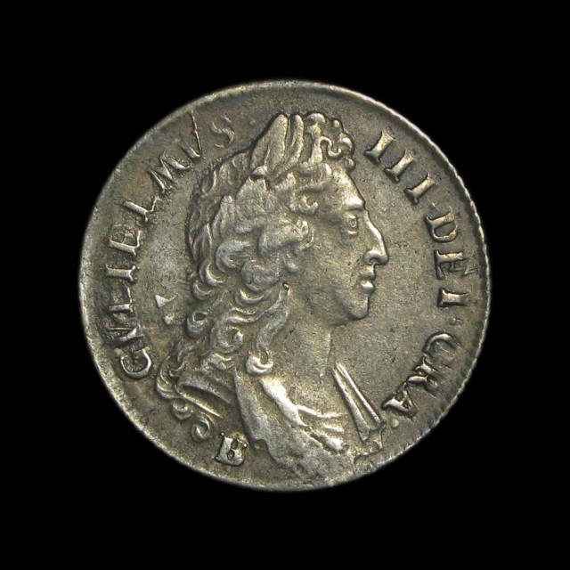 Bristol mint, first draped bust, 1696, B below bust (S.3409, N.1081)