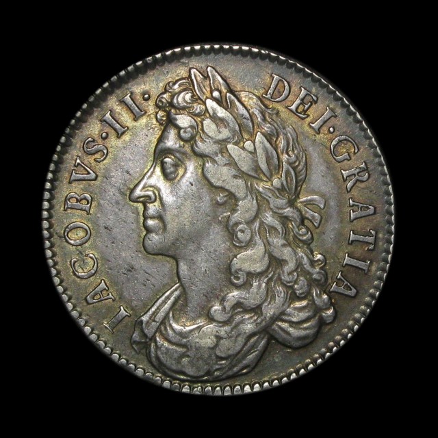 First laureate and draped bust, 1685, edge PRIMO (S.3408, ESC.493)
