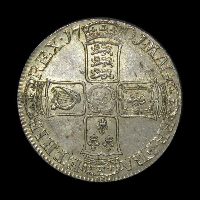 First draped bust, 1701, DVODECIMO to edge, reverse with large shields (S.3494, ESC.564)