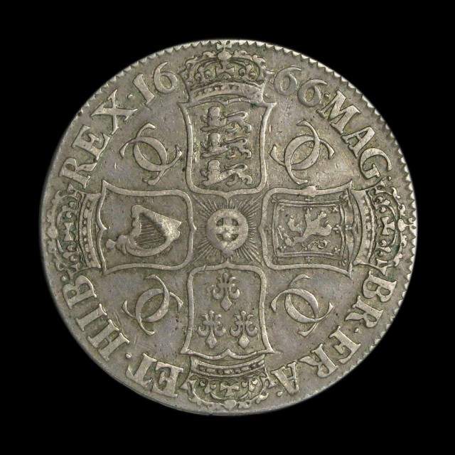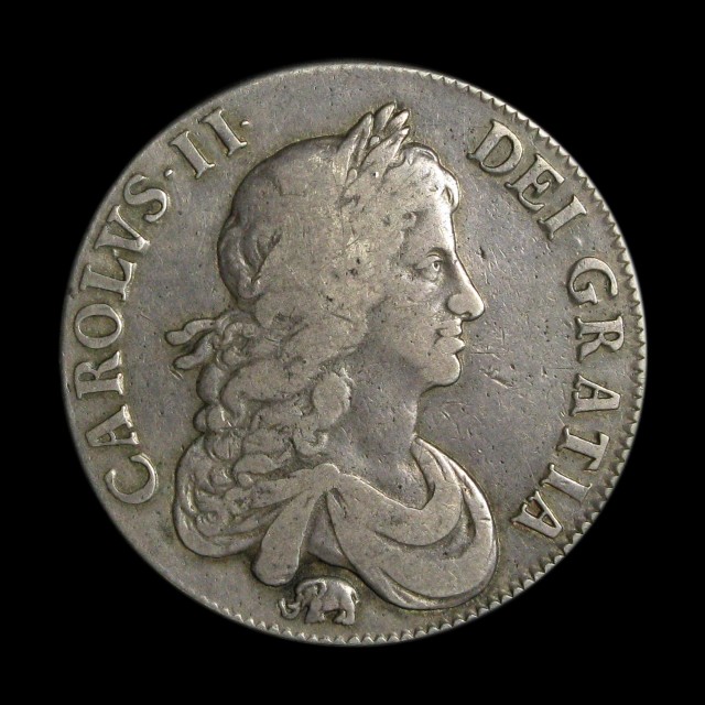 Second bust, elephant below, 1666, edge XVIII (S.3356, ESC.33)