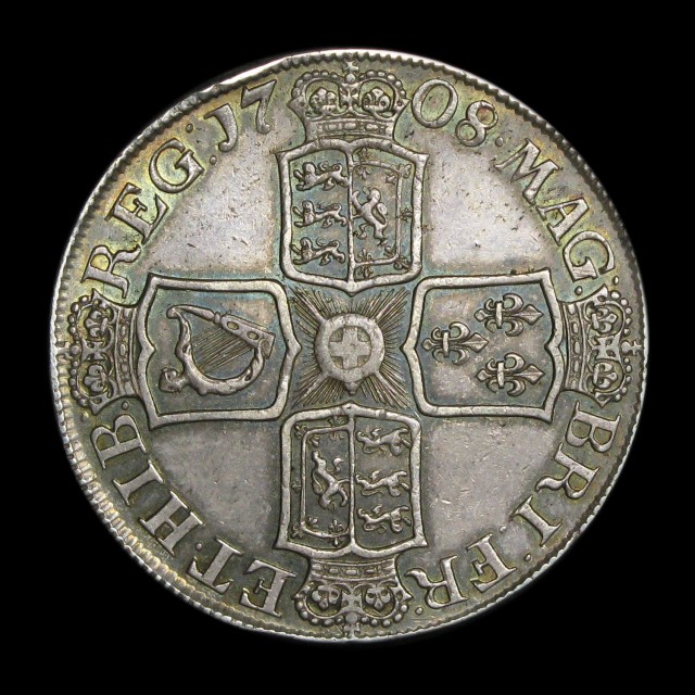 Second draped bust, angles plain to reverse, 1708, edge SEPTIMO (S.3601, ESC.105)